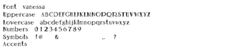 Vanessa เป็นครอบครัวตัวอักษรที่โดดเด่นซึ่งออกแบบมาสำหรับ Windows ที่รวมเอาความสวยงามแบบวินเทจเข้ากับลักษณะที่มีพื้นผิวและทำด้วยมือ มันมีเซอริฟที่หนาและขอบที่ไม่สม่ำเสมอ ซึ่งสร้างบรรยากาศที่ทำให้คิดถึงการพิมพ์แบบดั้งเดิม ครอบครัวตัวอักษรนี้รวมถึงสไตล์ที่หลากหลาย ตั้งแต่น้ำหนักที่หนาไปจนถึงเส้นขอบที่ละเอียดและการเติมที่มีพื้นผิว ซึ่งให้ทางเลือกมากมายสำหรับการเปรียบเทียบและความลึกในโครงการของนักออกแบบ